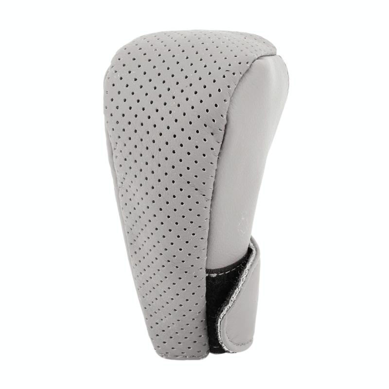 Universal Nonslip Breathable Genuine Leather Car Gear Shift Knob Cover(Grey)