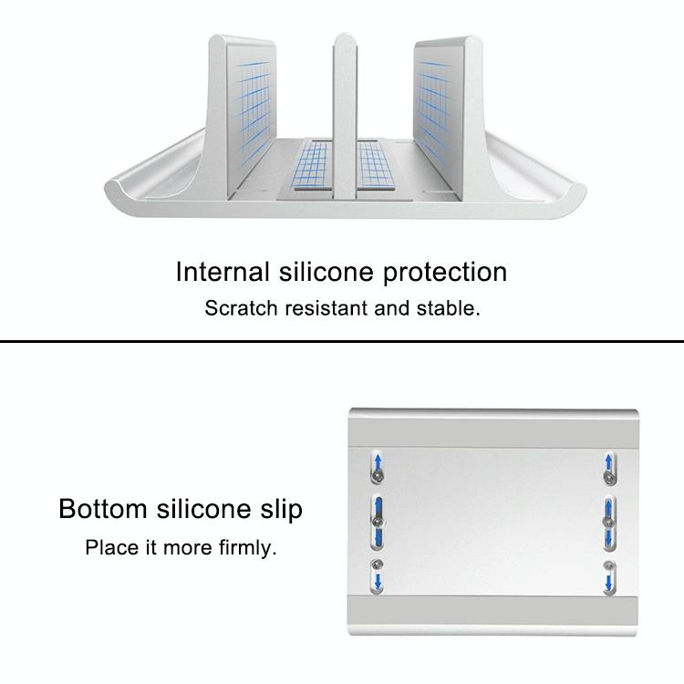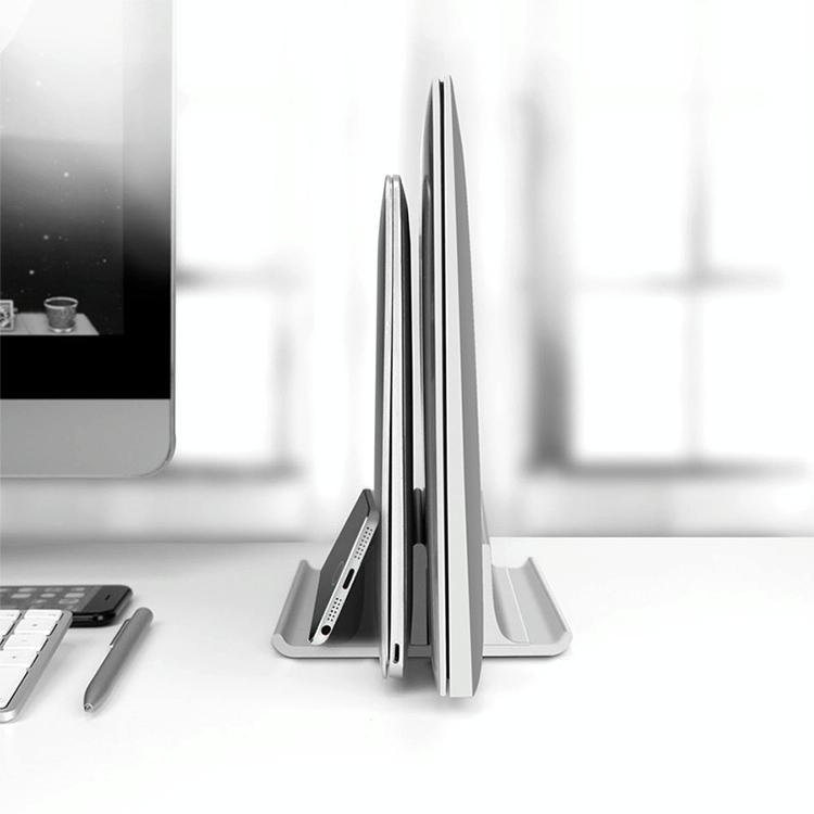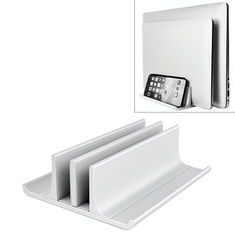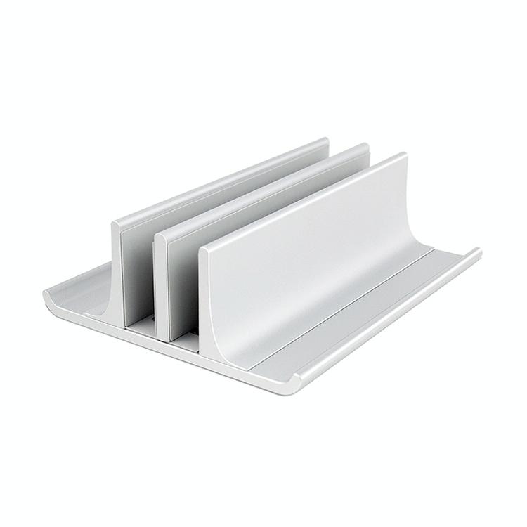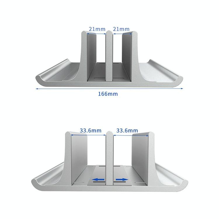 Universal Portable Aluminum Alloy Double Slot Width Adjustable Laptop Vertical Storage Stand Base(Silver)