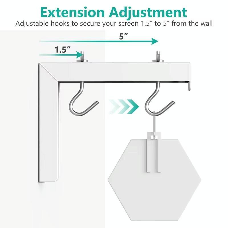 4. With adjustable hooks, firmly mount your screen 1.5 to 5 inches from the wall, and optimize its position by moving the mounting hook along the stand for a better projection experience.