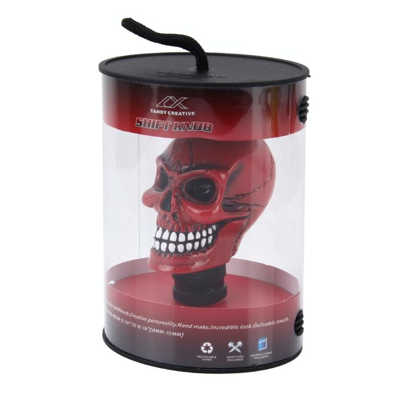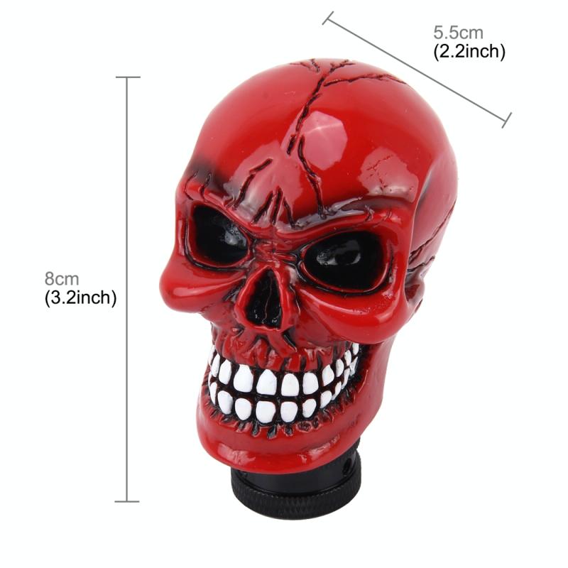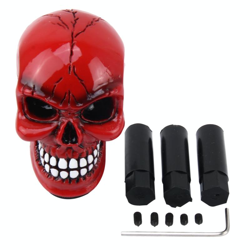 Universal Skull Head Shape ABS Manual or Automatic Gear Shift Knob with Three Rubber Covers Fit for All Car(Red)