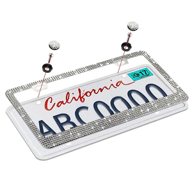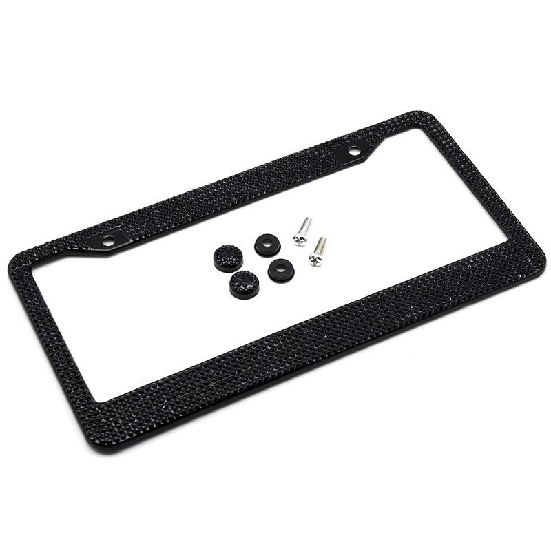 US Standard Stainless Steel License Plate Modified Frame With Diamonds, Color: Round Hole Black Diamond