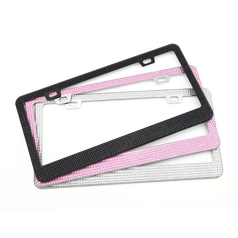 US Standard Stainless Steel License Plate Modified Frame With Diamonds, Color: Square Hole White Diamond