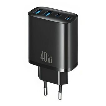 USAMS T70 CC330 40W Dual USB-A and Dual USB-C / Type-C 4-Port GaN Fast Charger, Plug:EU Plug(Black) (USAMS)