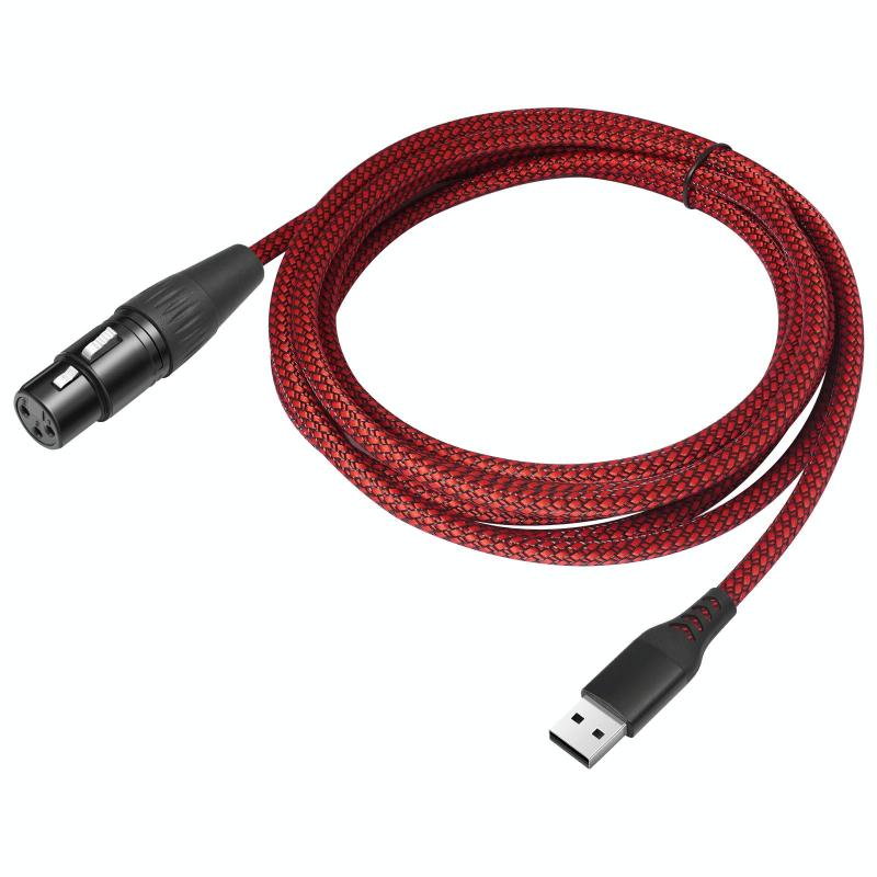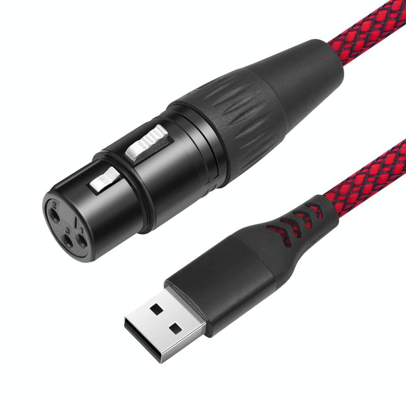USB-A to XLR Female Audio Recording Cable for Dynamic Microphone, Length:1m(Black Red)