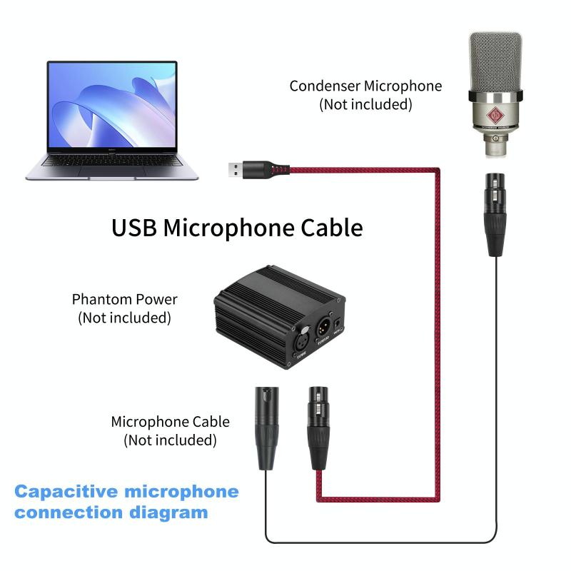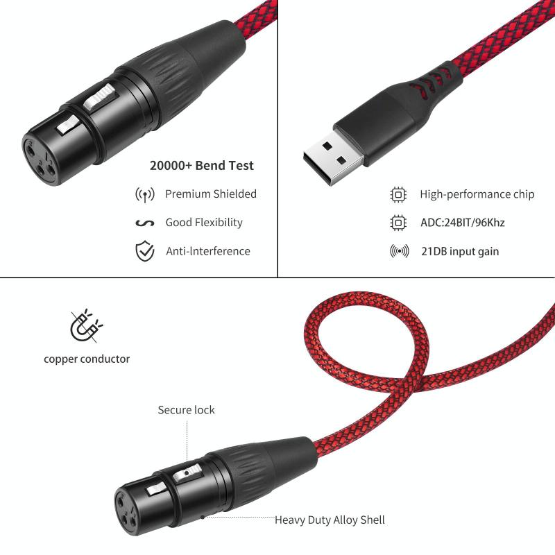 4. Low noise, high fidelity, USB microphone cable diameter 6mm (24AWG), oxygen-free copper (OFC) center conductor can enhance signal transmission.