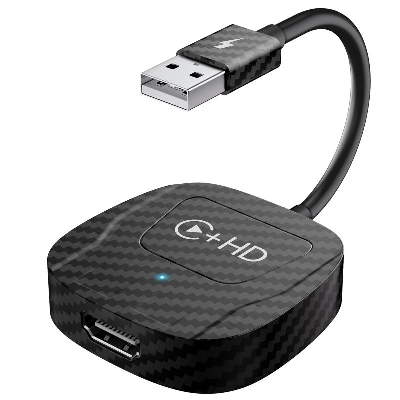 USB and HDMI Wired to Wireless CarPlay Auto Adapter, Specification:Square(Carbon Fiber)