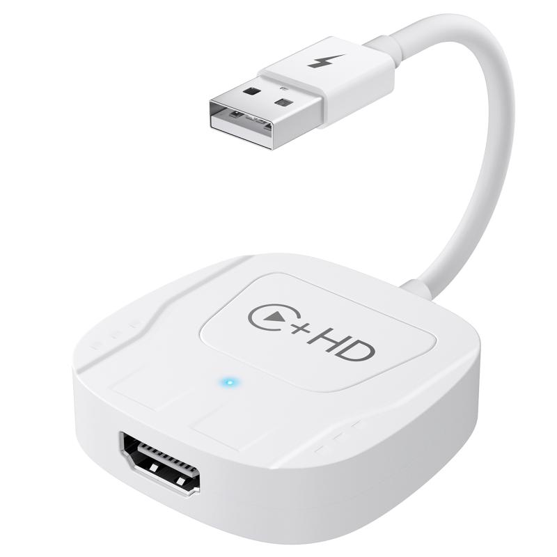 USB and HDMI Wired to Wireless CarPlay Auto Adapter, Specification:Square(White)