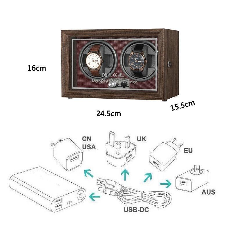 USB Automatic Mechanical Watch Shaker Watch Rotates Places Storage Box, Color: 2 Watches Red