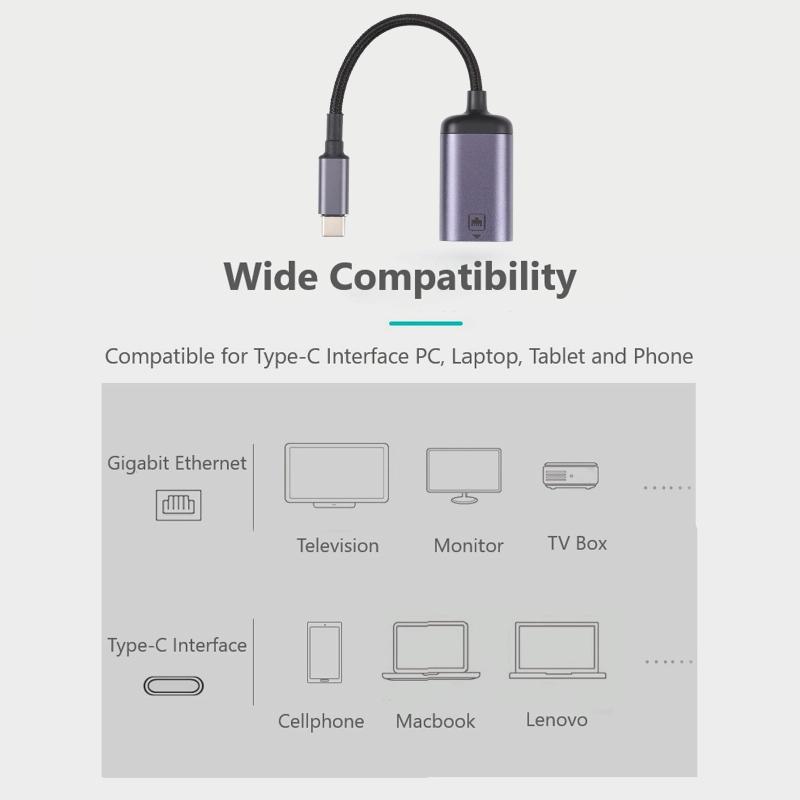 1. The Type-C interface of the laptop can be converted to an RJ45 interface;
