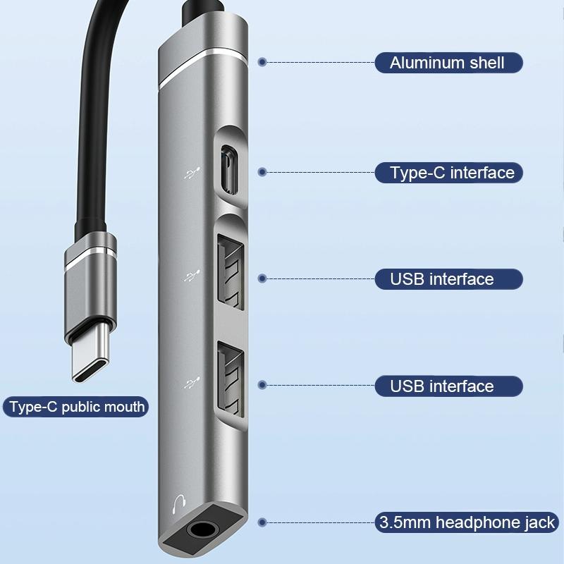 USB-C / Type-C to 3.5mm + 2USB + Type-C HUB Docking Station(Grey)