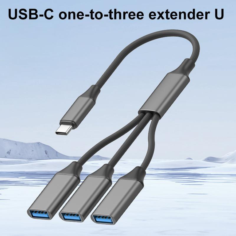 USB-C / Type-C to USB-A 3 in 1 OTG Expander Splitter Dock Station(Fabric Silver)