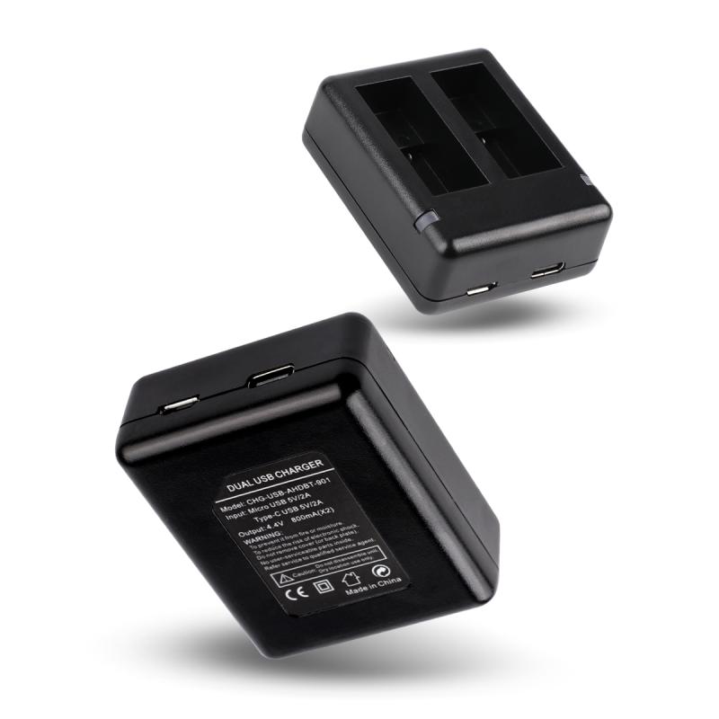 1. Charging indicator, when the charger is powered, battery in socket CH1/CH2, CH1/CH2 lights on.