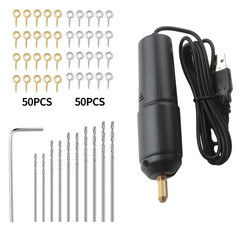 USB Interface 360 Mini Electric Drill Manual Glue Drilling Electric Drill, Set: Drill+4pcs Wrench+100pcs Nails
