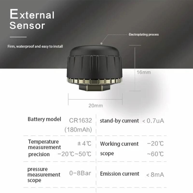 4. Tire monitoring range value: 0 bar-8bar /0-116psi
