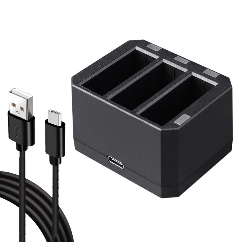 USB Triple Batteries Charger with LED Indicator Light for DJI OSMO Action(Black)