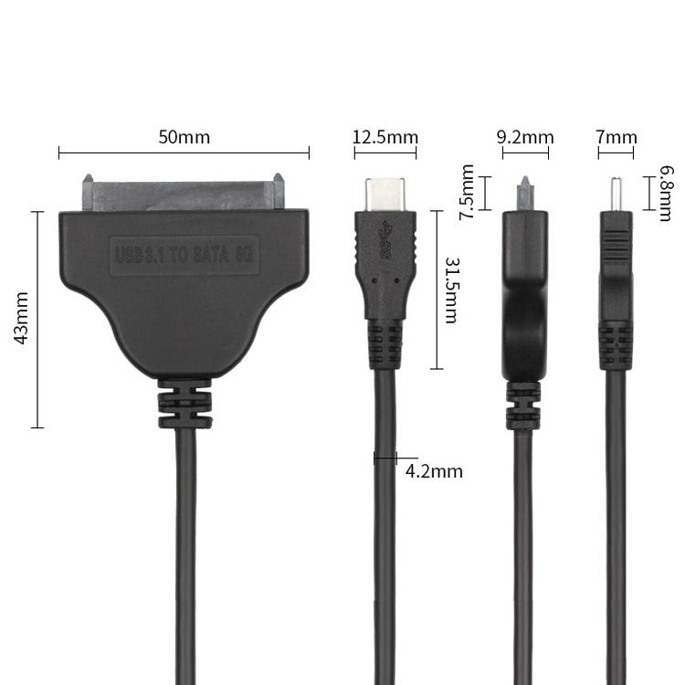 USB Type-C / USB-C to SATA 2 7+15 Easy Drive Cable, Length: 20cm