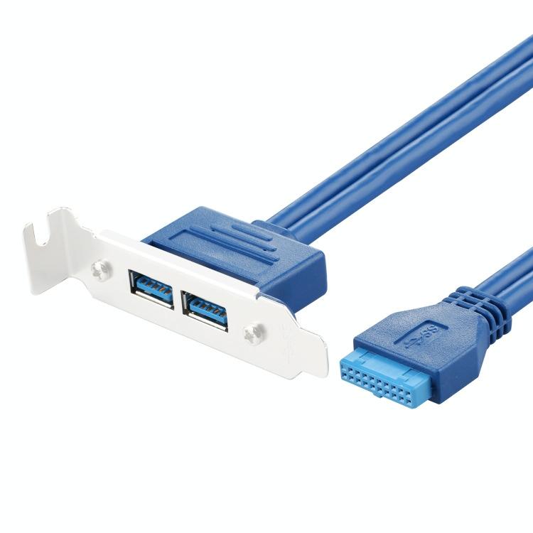 7. Applicable: It is used to extend the USB3.0 high-speed interface of the computer chassis PCI position, using the motherboard 20P header to transfer to two USB3.0 female ports, fixed on the rear of the chassis PCI baffle position to facilitate the connection of the device