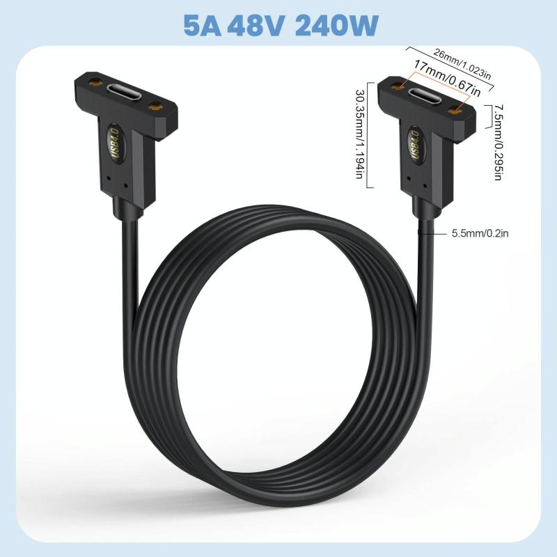 USB4 Type-C Female Ear to Type-C Female Ear Screw Fixed Panel Extension Cable, Length:0.6m