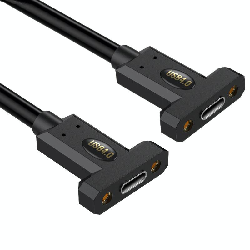 USB4 Type-C Female Ear to Type-C Female Ear Screw Fixed Panel Extension Cable, Length:1m