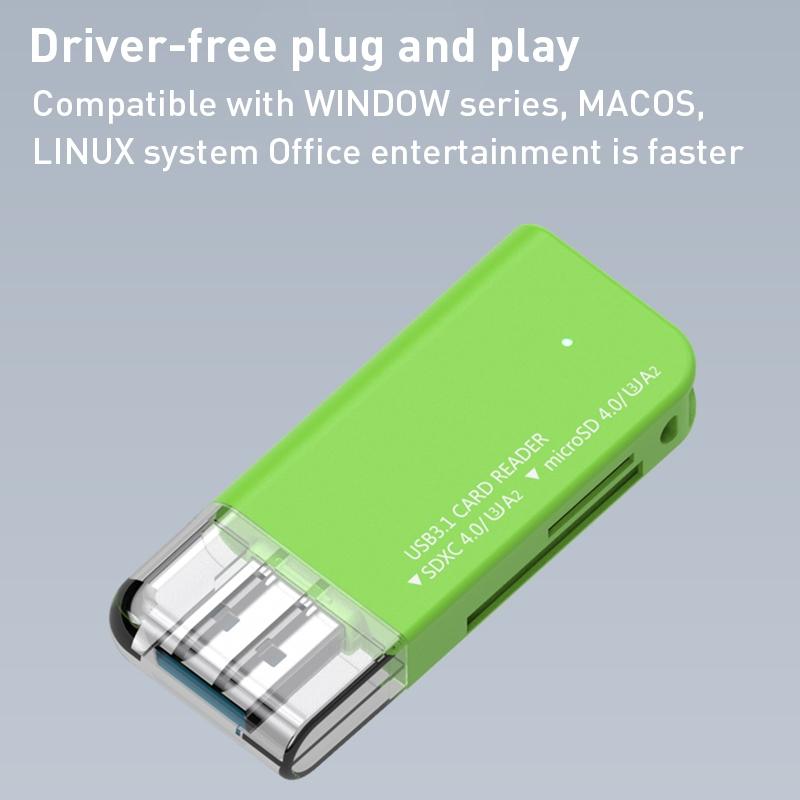 V30 / V60 / V90 USB3.1 Multifunction Card Reader Support SD / TF Card (Green)