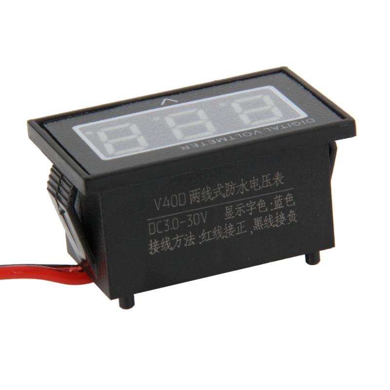 V40D 2 Wires Blue Light Display Mini Waterproof IPX4 Digital Voltage Meter, Measure Voltage: DC 2.5-30V