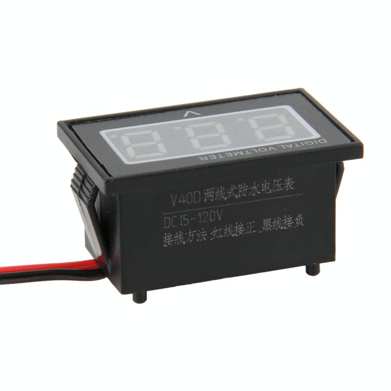 V40D 2 Wires Red Light Display Mini Waterproof IPX4 Digital Voltage Meter, Measure Voltage: DC 15-120V