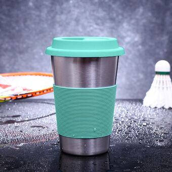 500ml Single Wall Electropolished Stainless Steel Curling Edge Beverage Cup With Rubber Circle Band And Cap(Blue)