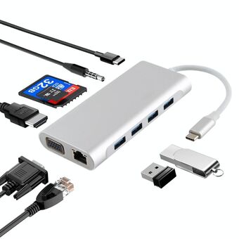 11 in 1 VGA + LAN Port + 4 x USB 3.0 + SD / TF Card + HDMI + Audio Port + USB-C / Type-C Female to USB-C / Type-C HUB Adapter (Silver)