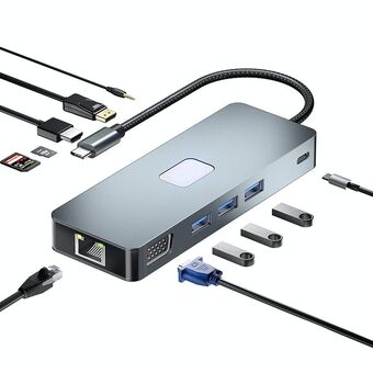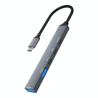 BYL-2308 6 in 1 USB-C / Type-C to USB3.2 + Gigabit Internet + HDTV HUB Adapter (Dark Gray)