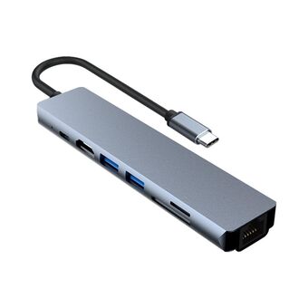 7 in 1 RJ45 + SD/TF + USB 3.0 x 2 + HDMI + PD to USB-C / Type-C HUB Adapter