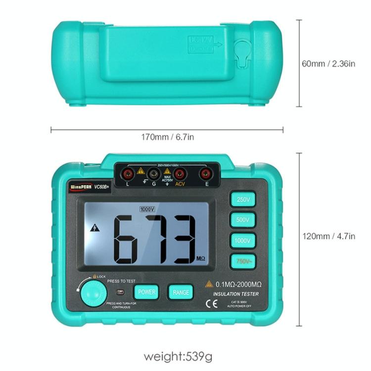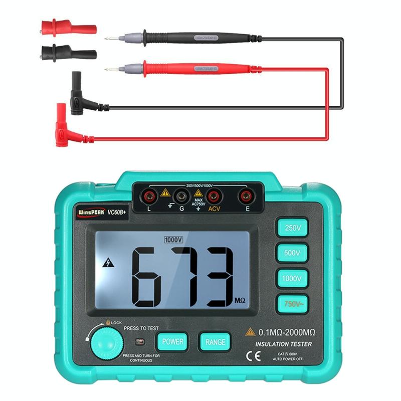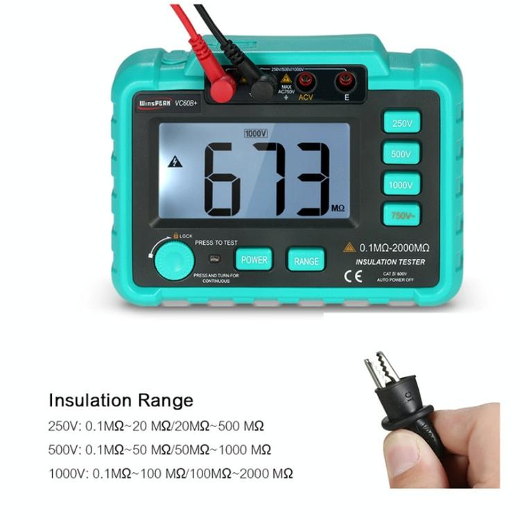 13. Insulation range: 250 V: 0.1MOhm~20MOhm / 20MOhm~500MOhm; 500 V: 0.1MOhm~50MOhm / 50MOhm~1000MOhm; 1,000V, 0.1 Mohm 100/2000 Mohm