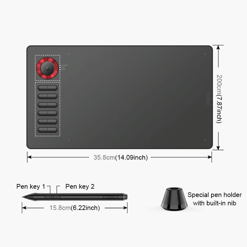 12. The product includes: tablet*1, pressure-sensitive pen*1, pen case*1, pen holder (including 8 nibs)*1, pen tip*20, pen picker*1, data cable*1, drive prompt Card*1, quick installation guide*1