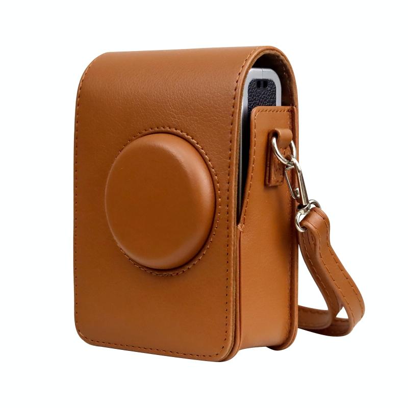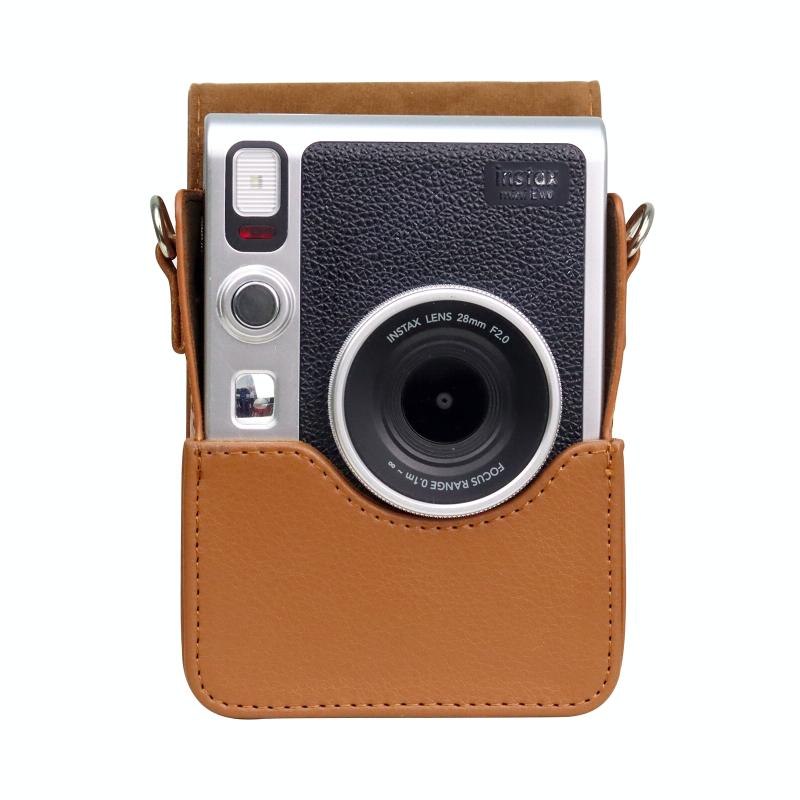 Vertical Full Body Camera PU Leather Case Bag with Strap for FUJIFILM instax mini Evo (Brown)