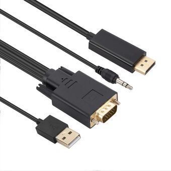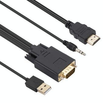 VGA to HDMI Adapter Cable with Audio Band Power Supply, Length: 1.8m(Black)
