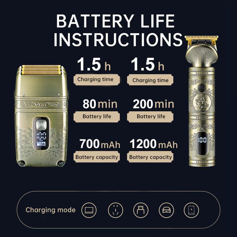 6. Accessories: USB charging cable x 1, limit comb x 4, dust cover x 1, cleaning brush x 1, storage bag x 1, instruction manual x 1