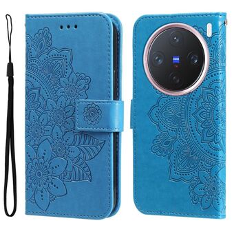 For vivo X200 Pro mini Seven-petal Flowers Embossing Leather Phone Case(Blue)