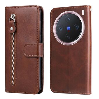 For vivo X200 Pro mini Fashion Calf Texture Zipper Leather Phone Case(Brown)