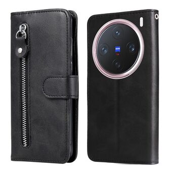 For vivo X200 Pro mini Fashion Calf Texture Zipper Leather Phone Case(Black)