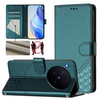 For vivo X300 Pro 5G Honeycomb Embossing RFID Leather Phone Case(Peacock Green)