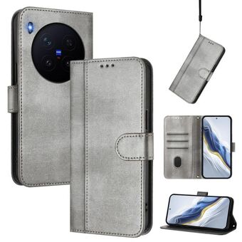 For vivo X300 Pro 5G Line Splicing Buckle Retro Leather Phone Case(Grey)
