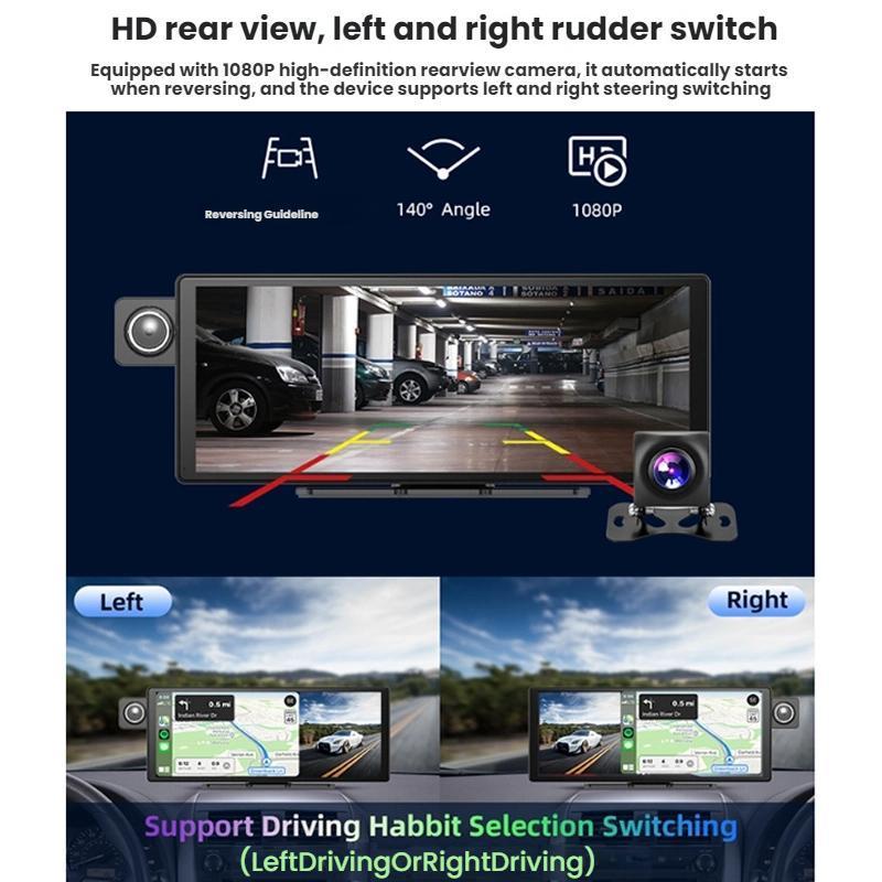 9. 1080P HD rearview camera, automatically activates when reversing, and supports left/right steering.