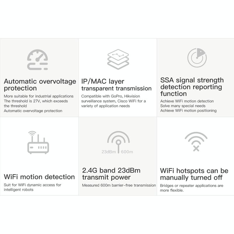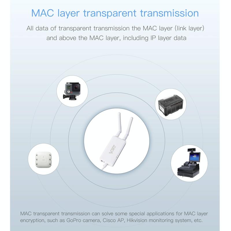 18. MAC transparent transmission can solve some special applications for MAC layer encryption, such as GoPro camera, Cisco AP, Hikvision monitoring system.