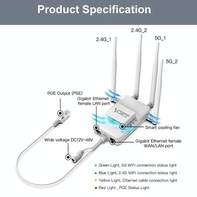 2. Wireless transmission rate: 300Mbps (2.4G) + 900Mbps (5G)