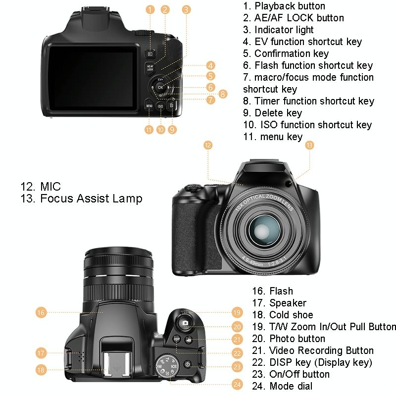 16. Built-in functions: microphone, speaker, remote control, electronic stabilization, focus assist lamp, flash, hot shoe