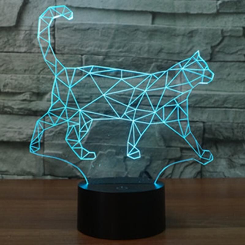 Walking Cat Shape 3D Touch Switch Control LED Light , 7 Colour Discoloration Creative Visual Stereo Lamp Desk Lamp Night Light