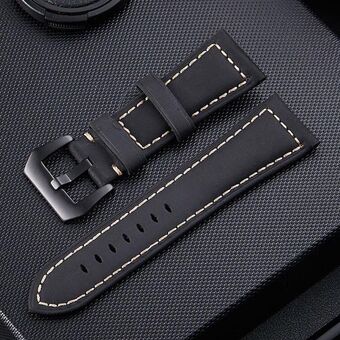 Crazy Horse Layer Frosted Black Buckle Watch Leather Watch Band, Size: 22mm (Black)