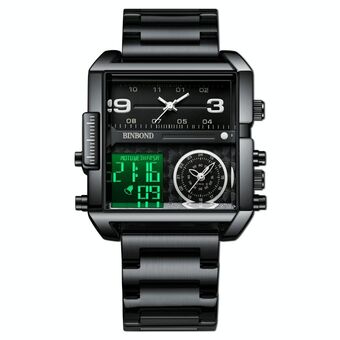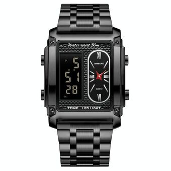 BINBOND B3332 Square Multifunctional Sports Quartz Waterproof Watch(Black Steel-Black-White) (BINBOND)