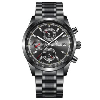 BINBOND B6022 30m Waterproof Luminous Multifunctional Quartz Watch, Color: Black Steel-Black (BINBOND)