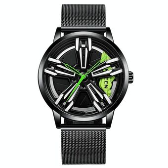 FNGEEN L001 Motorcycle Element Wheel Metal Men Watch(Black Net Black Steel Green Surface) (FNGEEN)