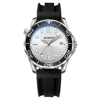 Black Silicon White Steel White BINBOND B2820 Luminous 30m Waterproof Men Sports Quartz Watch (BINBOND)